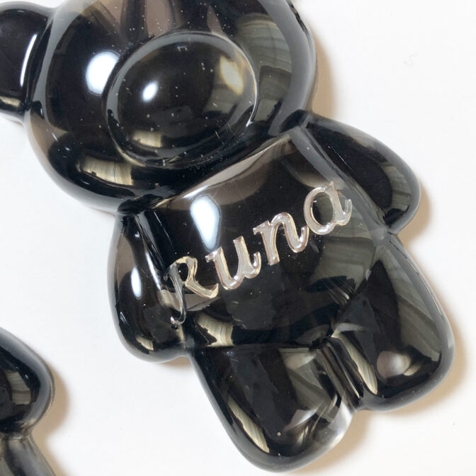 ぷっくり可愛いくまちゃんをブラックのマーブル模様で名入れ可能にしました!