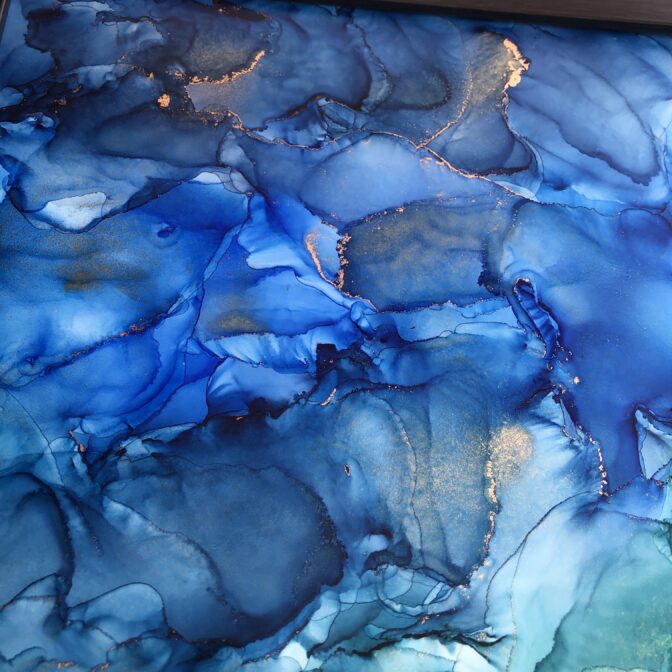 色と色が混ざり合い、偶然できる模様を楽しむアルコールインクアート。
