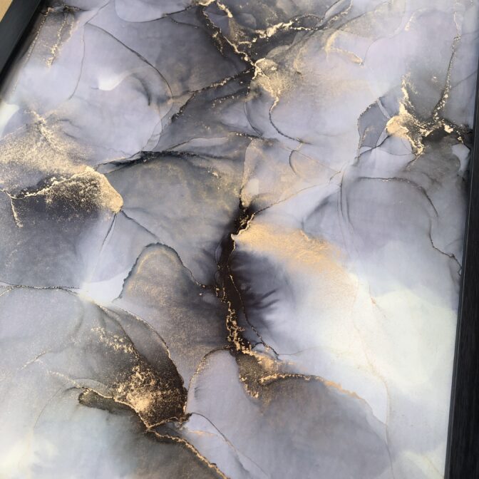 色と色が混ざり合い、偶然できる模様を楽しむアルコールインクアート。