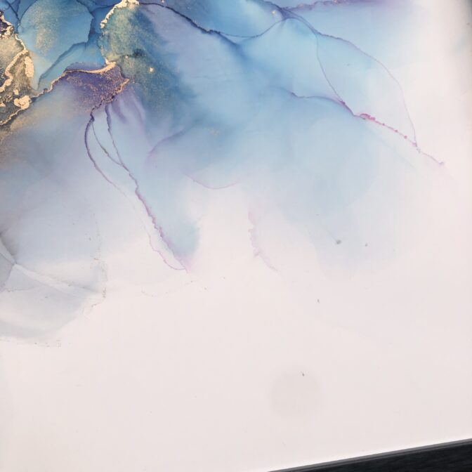 色と色が混ざり合い、偶然できる模様を楽しむアルコールインクアート。