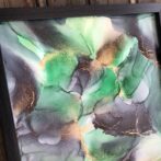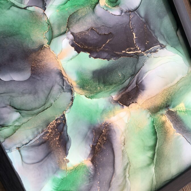 色と色が混ざり合い、偶然できる模様を楽しむアルコールインクアート。