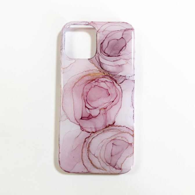 アルコールインクアートスマホケース/薔薇アート/くすみピンク/iPhoneケース