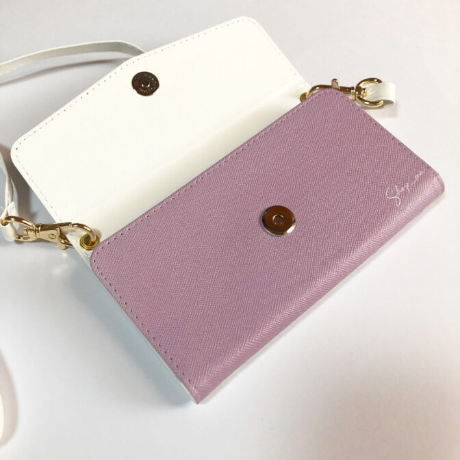 スマホショルダー手帳型ストラップ付スマホケース【くすみピンク】