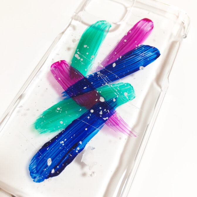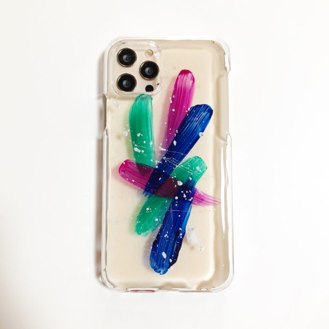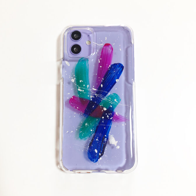 アクリル絵の具で描いた世界に一つのニュアンススマホケース【ビビットB】