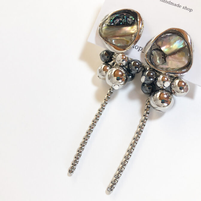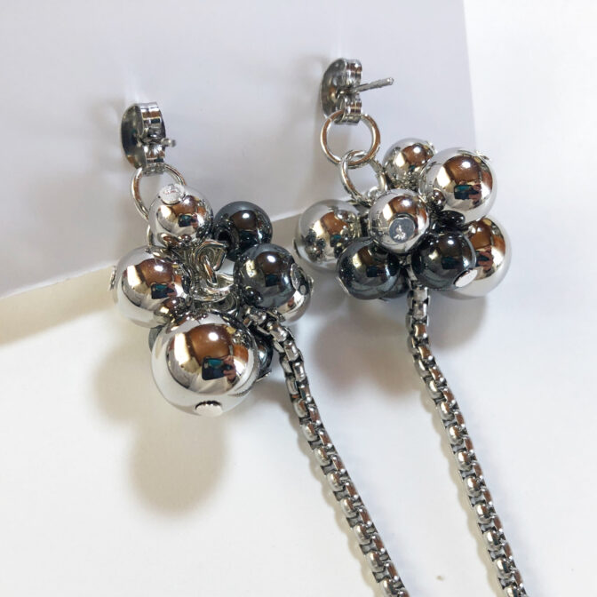 ピアス部分はサージカルステンレスを使用していますが、その他の使用しているパーツはサージカルステンレスではございません。
