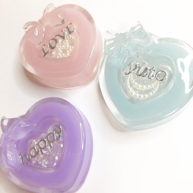 2液性レジンは固まるのに時間がかかるため、制作に1週間〜10日(土日祝日を省く)ほどいただいております。